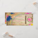 Carte d'embarquement vintage PixDezines pour un mariage à destination. Palmiers jumeaux, arc-en-ciel et colliers de fleurs d'hibiscus et de plumeria colorés, sur parchemin faux. L'arrière-plan peut être supprimé, vous pouvez ajouter n'importe quelle palette de couleurs. Copiez et collez pour plus de fleurs. Copyright © 2012 PixDezines.com™ et PixDezines™ sur zazzle.com