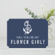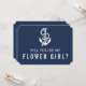 Incluez votre demoiselle d'honneur dans l'excitation du mariage avec cette jolie carte. Le design présente une illustration de corde et d'ancre sur un fond bleu marine classique. Des accessoires coordonnés sont disponibles dans notre boutique.