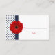 Le texte sur ces cartes marines bleu et blanc polka rouge de la marguerite mariage ou des cartes de place événement spécial est entièrement personnalisable, ou simplement laisser comme il est. La taille de la carte est de 3,5 po x 2,5 po et tout ce qui est nécessaire sont des porte-cartes. Cette carte rouge de fleur de marguerite gerbeuse fonctionnerait bien pour un mariage, un anniversaire, un wedding shower, une fête d'anniversaire ou une fête de remise de diplômes du secondaire. Vraiment, ce pour quoi vous l'utilisez dépend de vous.