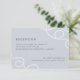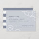 Élégante carte d'encart de réception de mariage côtier avec vos détails de réception sur un fond gris bleu pâle, accentué aux coins avec des boucles de corde nautique tressée. Les cartes sont à l'envers avec de larges bandes nautiques.