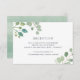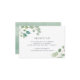 Conçue pour coordonner avec notre collection de mariage florale aquarelle Eucalyptus, cette élégante carte de réception botanique présente des jets de feuilles d'eucalyptus peintes à l'aquarelle entourant les détails de votre réception de mariage, y compris l'heure, le lieu et l'adresse.