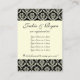 Avis de carte cadeau pour le Mariage / Planificateur d'événements avec joli damask de lustre.