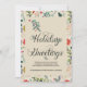 Carte florale d'invitation de salutations de vacances avec la conception florale des fleurs, des vignes, et des branches. Le texte de fantaisie lit des salutations de vacances. Ajoutez votre message et nom personnels facilement avec cette carte de modèle.