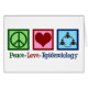 Une carte de Noël mignonne de l'épidémiologiste qui présente un signe de paix, un coeur et un cercle de personnes pour représenter la branche de la médecine qui étudie les maladies et la santé pour déterminer les facteurs de maladie et la prévention. Peace Love Epidemiology.