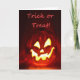 Une carte de Halloween avec une orange allumée a découpé le citrouille dans l'obscurité. Ceci fait une carte gentille pour des enfants pour ces vacances.