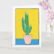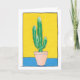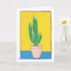 Cette belle carte de voeux simple a une photo dessinée à la main d'un cactus Euphorbia dans un pot de fleurs en terre cuite. Le cactus est en forme de chandelier. Le cactus est vert, sur fond jaune et bleu, avec une étroite ligne noire autour. La photo est sur un arrière - plan blanc. Vous pouvez le personnaliser avec votre propre salutation à l'intérieur. C'est un charmant exemple d'art simple, naïf, original, disponible uniquement dans l'Art d'être Beth.