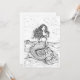 Illustration en noir et blanc d'une sirène assise au bord de l'océan.