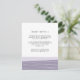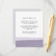 Conçue pour coordonner avec notre collection de mariages de Lineation à Amethyst, cette carte d'insertion d'invitation contient des détails clés pour vos invités, accentuée de lignes géométriques croisées en blanc et d'une couche inférieure de blocs colorés en lavande violet. Vous vous demandez quelles informations inclure sur un encart faire-part de mariage ? Prenez en compte des détails comme l'hébergement à l'hôtel, les codes de groupe, le transport, l'itinéraire, les informations sur la réception de bienvenue et votre URL du site Web mariage. Vous pouvez même télécharger une carte vers l'envers à l'aide de la fonction Personnaliser.