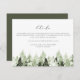 Ce mariage de détails carte d'enceinte comprend des pins d'aquarelle verte et une élégante police calligraphique. C'est l'ajout parfait à votre suite de mariage de forêt de montagne bohème moderne. Associez-vous à tout ce qui se trouve dans la collection CLOVER pour un look cohésif.