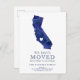 envoyez votre nouvelle adresse à vos amis et votre famille avec cette carte marine moderne bleu aquarelle de l'état de Californie avec typographie moderne. Parfait faire-part en mouvement. Déplacez le coeur vers votre emplacement.