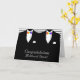 Carte de vœux personnalisée pour deux mariés avec deux nœuds papillon aux couleurs de l'arc-en-ciel de la fierté gay. Cartes de félicitations pour mariage gay / cérémonie civile. Idéal pour les deux mariés. Cartes de mariage gay conçues par Ricaso