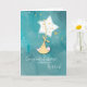 Un enfant précieux vous ôte votre souffle avec leur tout premier souffle. Félicitez la nouvelle mère avec cette carte bébé. Le bébé est bercé dans les étoiles avec un arrière - plan d'aquarelle dans les tons teals et verts. Carte parfaite neutre genre pour garçon ou fille.