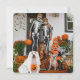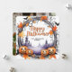 Joyeuse carte Halloween avec aquarelle illustration de citrouilles sculptés, chauves-souris et feuilles de chute sur le devant et une photo à l'arrière. Personnalisez facilement cette carte photo Halloween avec votre nom de famille et votre photo.