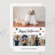 Photo Carte Halloween avec un montage photo et des empreintes de pattes sur le devant et un fantôme squelette avec un jack-o-lanterne à l'arrière. Personnalisez facilement cette carte d'Halloween avec vos photos, le nom de famille et le texte. Cette carte Halloween parfaite pour chat ou amoureux de les chiens peut être transformée en n'importe quelle couleur à l'aide de l'outil de personnalisation.