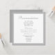 Cette invitation est conçue avec élégance avec un thème de couleur gris et blanc simple et propre à l'esprit, avec une typographie élégante. Personnalisez avec vos informations, ou personnalisez-le en cliquant sur le bouton "personnaliser" pour modifier l'un des éléments. Le verso de l'invitation est d'une teinte correspondante de gris pâle.