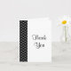Ajoutez une touche de sophistication rétro à votre remerciement grâce à ce Carte de remerciements de diamants Art déco noir et blanc. Imprimez un message de votre choix à l'intérieur ou laissez-le vide pour une personnalisation supplémentaire - comment vous dites merci est entièrement à vous! Que vous choisissiez de commander un ensemble physique ou de télécharger certains pour envoyer électroniquement ou imprimer vous-même, ces cartes express votre gratitude de façon élégante.