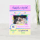 Carte de voeux pour un anniversaire de Mariage Diamond. Ajoutez des noms, une photo et la date établie 60 années heureuses ensemble. Rose et un dégradé de couleurs bleu, vert et jaune, avec des coeurs d'amour et des formes tourbillonnantes.