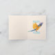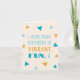 Cette carte d'anniversaire est conçue avec un design gai et ludique. L'avant de la carte présente un arrière - plan crème pâle ou beige aux formes triangulaires éparpillées, dans les tons bleu clair et jaune moutarde. Le texte à l'avant dit : "J'ESPÈRE QUE VOTRE ANNIVERSAIRE EST VIBRANT, AMUSANT, &" L'intérieur de la carte présente une illustration d'un dessin coloré d'un perroquet macaw en vol. Au-dessus et au-dessous de l'oiseau, dans un texte bleu clair, sont les mots "MACAW-" et "VELOUS", créant le jeu de mots "MACAW-VELOUS".
