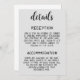Complétez votre suite de mariage avec notre carte d'information de détails de mariage minimaliste. Des lignes épurées et une élégance discrète se rencontrent avec la fonctionnalité, assurant que chaque détail est magnifiquement transmis. Un ajout indispensable pour votre jour spécial.