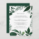 Conçue pour coordonner avec notre collection de mariages de la forêt sauvage, cette élégante carte d'information botanique d'hiver comporte une bordure de feuillage vert chasseur encerclant vos principaux détails mariages, tels que les chambres d'hôtel, les informations de réception de bienvenue, le site Web et plus encore. Ajoutez votre texte personnalisé à l'aide des champs fournis, puis ajustez les polices, les tailles et l'espacement si nécessaire.