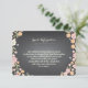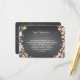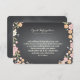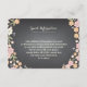 De jolies fleurs en rose tendre, abricot et rosé avec des baies et des fleurs en ivoire sur un fond ardoise noir tendance encadrent votre carte d'information de mariage dans un style charmant. Utilisez-la pour inclure les directions, les informations sur l'hébergement à l'hôtel local ou d'autres détails du mariage. Parfait pour un mariage de printemps ou d'été ou lorsque le thème du jardin ou de l'extérieur fait partie de votre journée spéciale. Un mélange fantaisiste de typographie ajoute de l'amusement et de l'élégance. Les produits coordonnés dans cette suite comprennent l'invitation, la carte de réponse, le timbre-poste, les cartes de place, les cartes de numéro de table, les étiquettes d'adresse et les autocollants de faveur - tout ce dont vous avez besoin pour un ensemble de mariage charmant et complet.