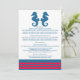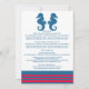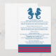 Elégante et classique carte d'information Mariage de cheval de mer avec une paire de hippocampes simples et un ensemble de bandes en bleu marine foncé et rouge. Cette plage nautique à thème pour carte peut être facilement customisé avec vos coordonnées de mariage. Pour plus d'options de personnalisation, cliquez sur le bouton Customiser.
