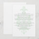Simple avec une élégance chic décrit cette carte d'information de mariage en damas subtil sophistiquée avec un fond fleuri damassé vert menthe clair. Cette carte d'information moderne est parfaite pour un mariage traditionnel et peut être facilement personnalisée avec vos détails de mariage. Pour plus d'options de personnalisation, cliquez sur le bouton Personnaliser.