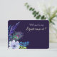 Demandez-lui d'être votre demoiselle d'honneur avec cette jolie carte d'image florale aquarelle boho ! Elle comporte votre texte personnalisé en or léger sur un fond de bleu foncé. Un embellissement floral aquarelle bleu, comprenant une plume de paon de style boho et des baies bleues orne le côté droit. Le verso de la carte comporte des champs de texte supplémentaires pour que vous puissiez personnaliser sur le même fond bleu. Cette carte correspond aux invitations de mariage et autres produits de mariage de notre magasin.