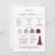 Cette carte d'information de fête de mariage est entièrement personnalisable. Éditer pour toute votre fête de mariage, y compris Maid of Honor, Flower girl, etc. Modifiez tout le texte et les couleurs pour qu'elles correspondent à votre mariage. Cliquez simplement sur le bouton bleu "PERSONNALISER" en haut à droite. Ensuite, faites défiler vers le bas et cliquez sur le bouton "Modifier à l'aide de l'outil de conception" pour customiser pleinement votre carte. Everleigh Collection - une collection étonnante et minimaliste qui dispose d'une police de calligraphie moderne qui est à la fois chic et élégant. Cette collection offre un design intemporel et élégant qui est parfait pour tous les événements, des mariages aux baby showers et tout entre les deux. Découvrez l'élégance et le raffinement de la collection Everleigh et faites de votre événement un souvenir inoubliable.