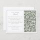 Cette carte d'information mariage sophistiquée est le complément parfait à votre suite d'invitation, ornée d'un design inspiré par William Morris dans un classique vert de forêt. L'avant de la carte est joliment encadrée d'une illustration botanique détaillée, tandis que l'arrière offre suffisamment d'espace pour partager les détails les plus fins de votre journée spéciale. C'est l'endroit idéal pour inclure les directions, les détails de la cérémonie et les préférences de cadeau, pour s'assurer que vos invités sont bien informés. L'élégante façade et la disposition font écho à l'attention attentive aux détails que votre mariage incarne. Dirigez les invités vers votre site Web mariage pour obtenir des informations supplémentaires, ce qui rend cette carte à la fois pratique et un maintien de votre événement magnifique.