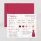Une carte d'information de demoiselle d'honneur avec de l'or et diverses nuances de rouge et de rose, du bordeaux et d'un rouge/magenta moderne au rose poussiéreux et au blush, comprenant des informations sur la date et le lieu du mariage, les couleurs du mariage, le cortège nuptial, la robe de demoiselle d'honneur et un message de proposition de demoiselle d'honneur. Le nom de la demoiselle d'honneur et les titres sont écrits dans un élégant script. Dans le coin inférieur droit, il y a une robe rouge magenta. Au centre, se trouvent les couleurs du mariage dans des cercles. Les couleurs, y compris la couleur de la robe de mariée, peuvent être modifiées, à l'exception du cercle doré, qui est une feuille de faux or.
