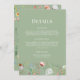 Partagez des informations importantes avec vos invités à l'aide de cette carte de détails Fleur sauvage Sage Green, idéale pour l'hébergement, l'itinéraire ou les notes d'horaire. Avec un design botanique souple et un texte entièrement modifiable, cette carte complète l'ensemble de la collection de Mariages Fleurs sauvages Sage Green. Idéal pour des fêtes rustiques, en plein air ou dans le jardin.
