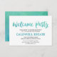 Cette carte d'insertion de bienvenue pour fête en calligraphie aquarelle est parfaite pour un mariage sur le thème de la plage tropicale. Le design amusant et énergique présente une jolie police de caractères en écriture aquarelle ombrée de vert sarcelle et de bleu aqua. Personnalisez cette carte de détail avec les informations de votre réception et incluez également l'adresse de votre site web de mariage !