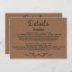 Carte d'insertion de détails mariage | Rustic Country Kraft