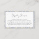 Aidez les invités à célébrer avec facilité en utilisant cette carte d'insertion de douche d'affichage de style français de poire parfaite bleue. Avec une bordure damassée élégante et un motif de poire, cet insert fournit des instructions claires pour une douche de mariage de style d'affichage. Une touche élégante et pratique qui garde l'événement organisé tout en correspondant à votre thème. Associez-la aux invitations, à la vaisselle et aux faveurs de la collection Perfect Pear.