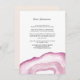 Une élégante carte d'insertion de mariage, avec un design d'agate aquarelle en mauve et rose. Cette carte élégante peut être utilisée pour les directions, les informations de réception, un menu, et plus encore !