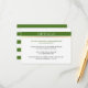 Bandes vertes et blanches or ligne détails mariage insérer la carte. Une carte de détails mariage chic qui comporte une bande verte sur le dessus et votre libellé dans une bande blanche avec une ligne d'or. Le texte est en vert et noir. Un motif rayé vert et blanc recouvre le dos de la carte. Il conviendra parfaitement à un mariage irlandais.