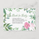 La carte d'insertion de livre pour bébé présente votre message personnalisé dans une police de calligraphie manuscrite entourée de verdure botanique aquarelle luxuriante et de jolies roses roses. Vous pouvez modifier les mots pour personnaliser votre carte d'insertion de fête de bébé pour refléter votre style. Pour voir plus de modèles, visitez www.zazzle.com/vginvites