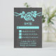 Carte RSVP Mariage Chalkboard Sweet et et joli Rose en turquoise avec un seul rose adorable sur une vigne sur un tableau noir look arrière - plan. Cet élégant design est parfait pour un mariage de printemps ou d'été. Facile à customiser, il suffit d'ajouter les détails de votre mariage dans les champs de texte fournis. Cliquez sur "Customiser" pour trouver d'autres options de personnalisation.
