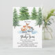 Ravissez vos invités avec cette carte d'invitation à la Baby Shower en forêt hivernale pour la célébration de l'arrivée du bébé que vous préparez.