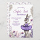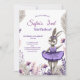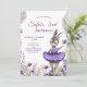 Carte d'invitation anniversaire. Mignonne lapin de ballerine dans des tons mauves délicats.