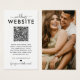 Carte d'invitation élégante pour site web de mariage comportant un code QR qui dirige vos invités vers votre site web qui contiendra des informations supplémentaires sur votre mariage à venir, par exemple l'hébergement, les directions, etc. Le verso de cette carte comporte une photo de vous et votre partenaire.
