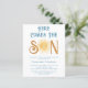 Invitez famille et amis à votre baby shower sur le thème du soleil avec cette jolie carte d'invitation pour garçon à petit budget.