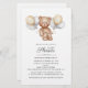 Invitation Baby shower de script de ballons d'ours budget. Carte d'invitation baby shower neutre et tendance, avec un bébé ours avec ballons. Parfait pour les baby showers garçons et filles.