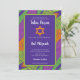 Démarquez-vous avec cette invitation unique et amusante de Bat Mitzvah rétro. Elle présente un design de fond violet, vert et orange qui peut être repris pour le reste de votre événement. Des décorations de fête au décor de table, vos choix sont infinis. Votre fille sera ravie de cette invitation amusante et excitante pour son jour spécial.