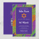 Carte d'invitation Bat Mitzvah rétro violet et ver