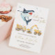 Rejoignez-nous pour une aventure d'anniversaire géniale ! Cette invitation personnalisable mélange des camions de construction puissants avec un requin féroce, ce qui la rend parfaite pour les frères et sœurs de tout sexe. Préparez-vous à creuser, mâcher et célébrer dans le style ! Personnalisez avec les détails de votre événement et laissez la fête commencer !