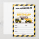 Créez l'invitation de fête parfaite avec notre invitation de birthday masonry modifiable ! Personnalisez avec les détails de votre fête instantanément. Thème de construction amusant avec camions, outils et plus !