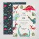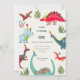 Invitation d'anniversaire dinosaure amusante avec des dinosaures préhistoriques lumineux et des feuilles de jungle. Parfait pour une fête d'anniversaire de garçon sur le thème des dinosaures. Personnalisez avec le nom de votre enfant, son âge et les informations sur la fête. Œuvre originale de Caroline Bonne Müller.