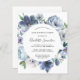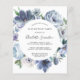 Les pivoines bleues poussiéreuses forment un cadre rond autour des détails de votre fête d'anniversaire sur cette élégante invitation économique.